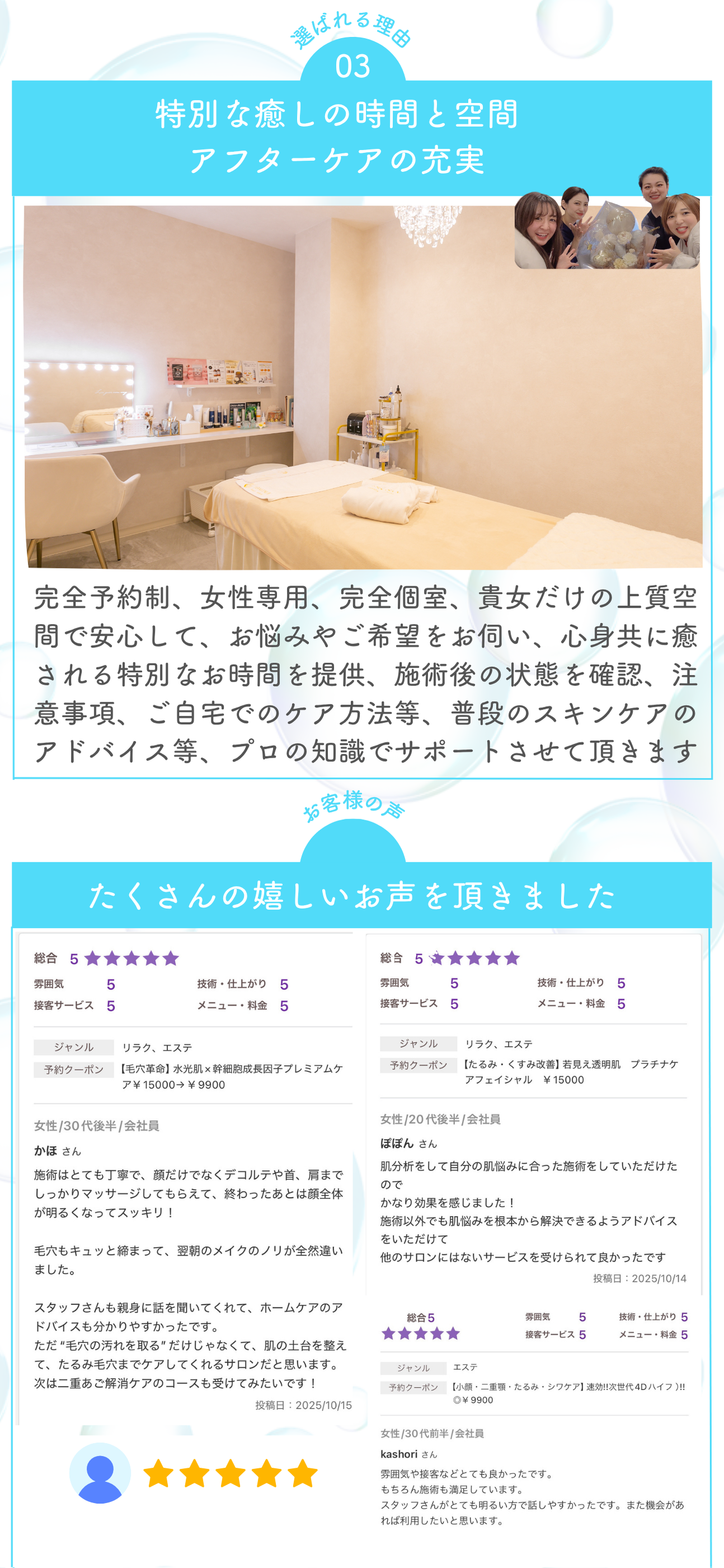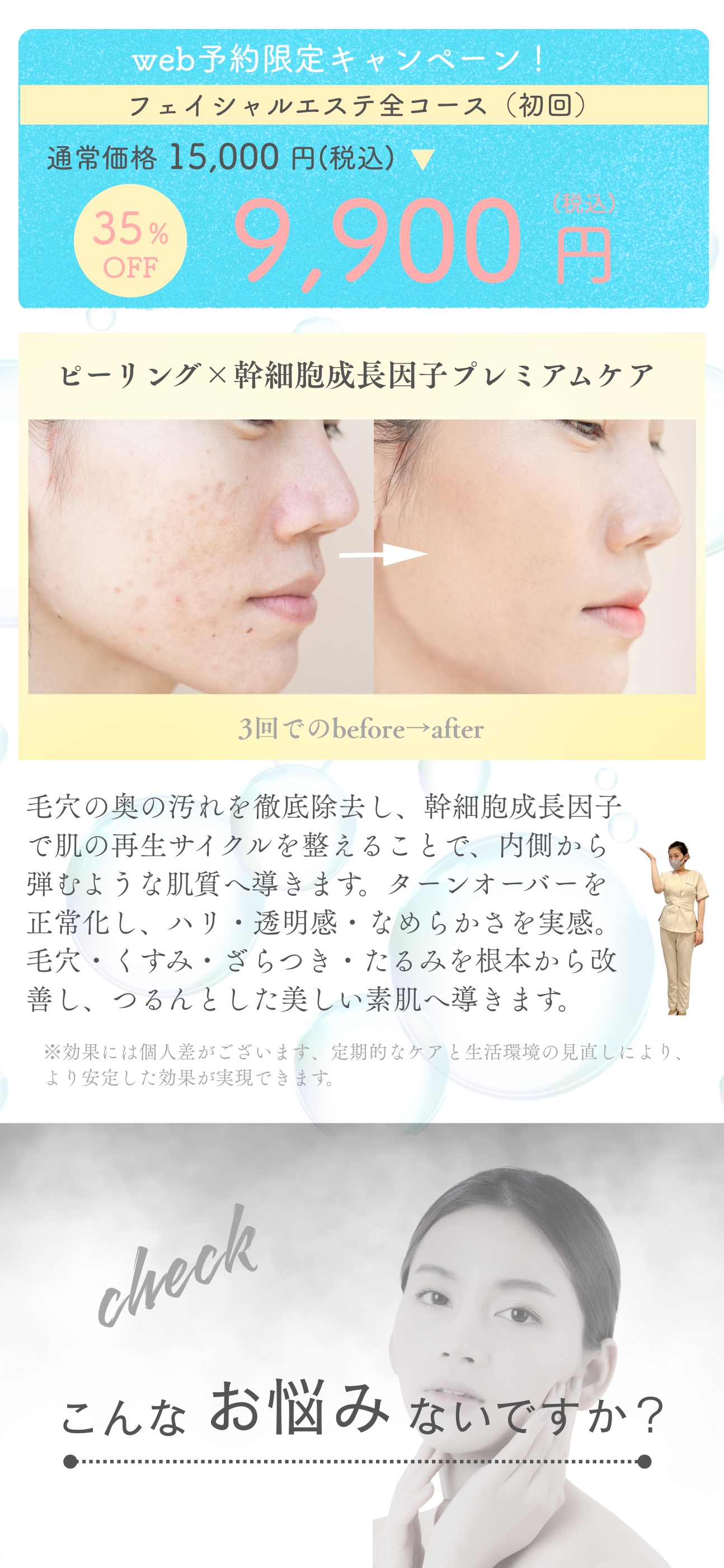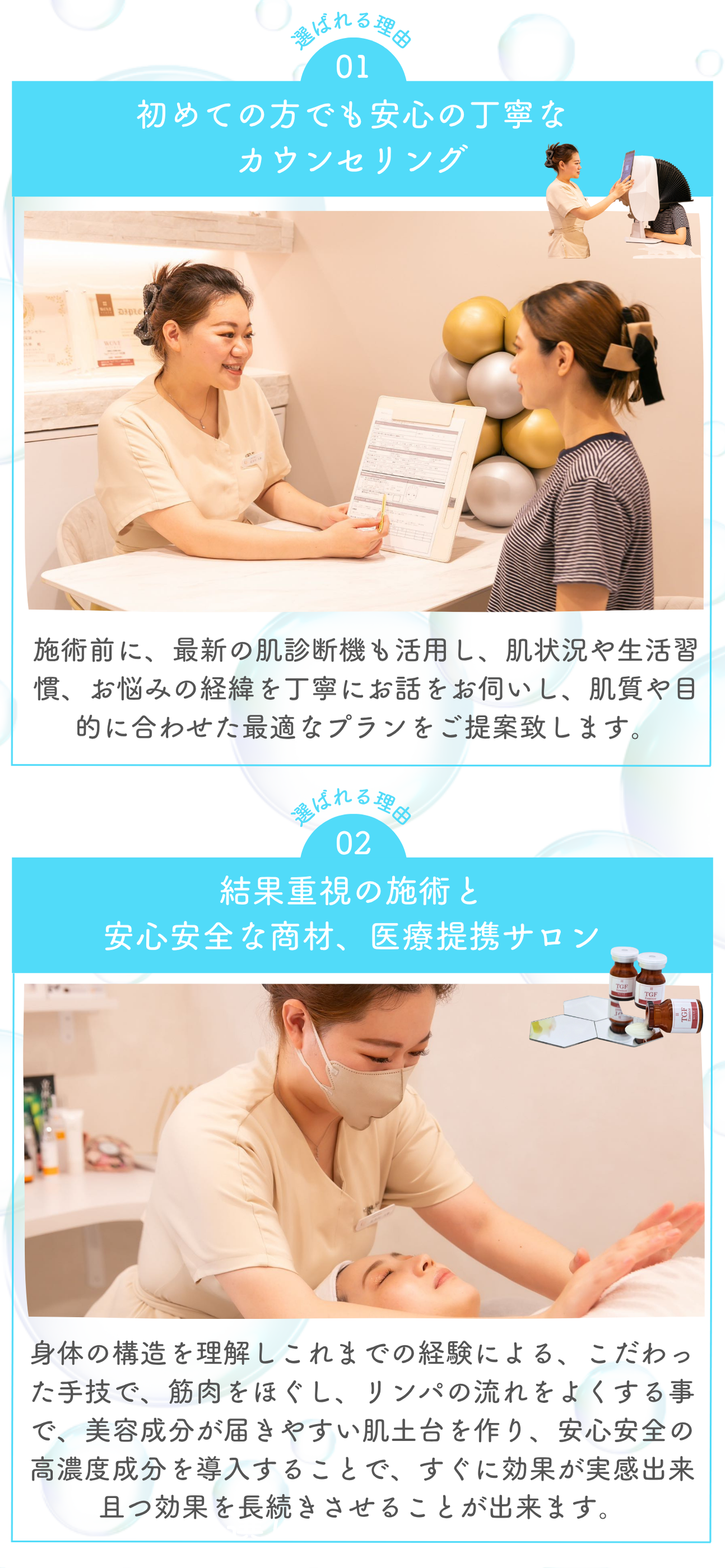 あらゆるお肌のお悩みを理解し改善致します。